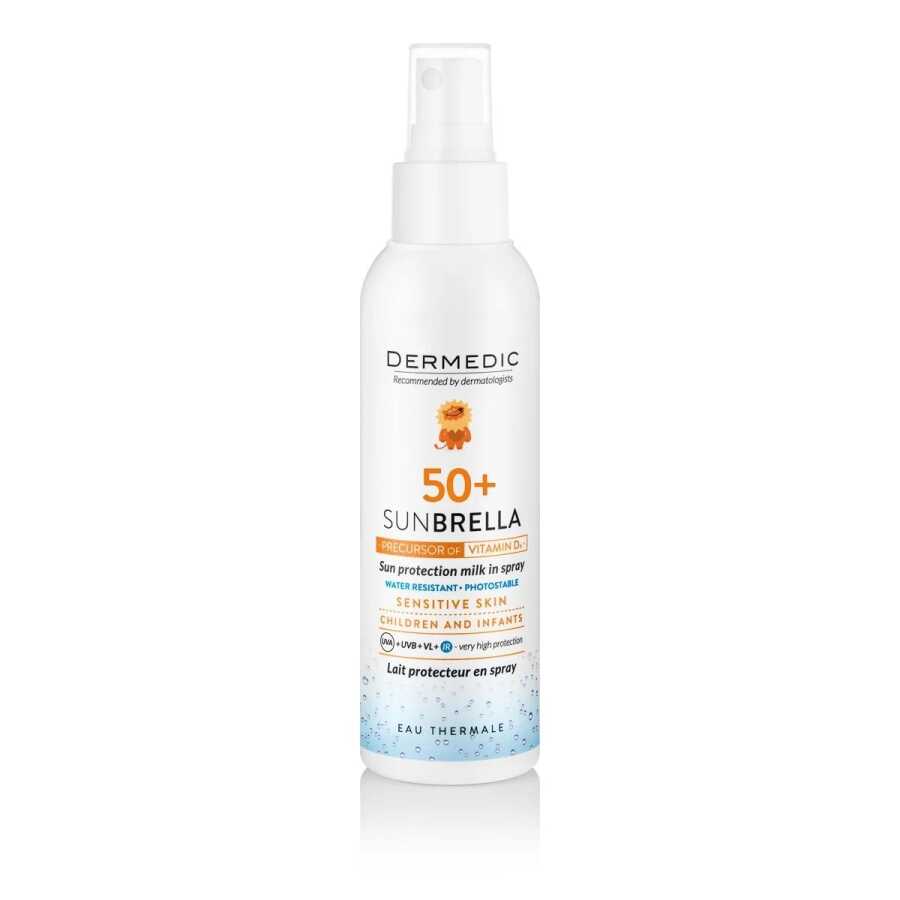 Dermedic Sunbrella Çocuk ve Bebek Güneş Koruyucu Sprey Süt SPF50+, yüksek güneş koruması sağlayarak UVA ve UVB ışınlarına karşı etkili koruma sunar.